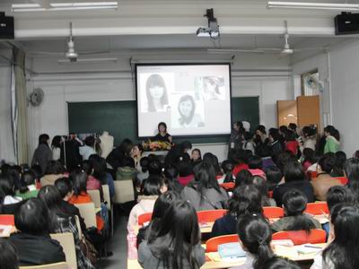 2009年11月5日,朱学东校长及其校内的高级教师如约来到我校学院路校区,在教学楼107室与众多慕名而来的法大学子展开了广泛的交流。朱校长专业而又充满激情地讲解了职场化妆的主要技巧及其重要性,其演讲主要包括“完美粉底”、“脸部化妆”、“皮肤保养”、“发型与发色”、“商务衣橱管理”五大主题,并在最后寄语在座的听众:作为未来的职场新秀,尤其是从事专业工作的法律人,一定要注意在保持严谨职务形象的同时适当展现自我的个性。最后,惠美容形象艺术学校的彩妆师和江副校长还现场演示了化妆和服装搭配的各种技巧,让同学们身临其境的感受了专业彩妆造型的魅力。
