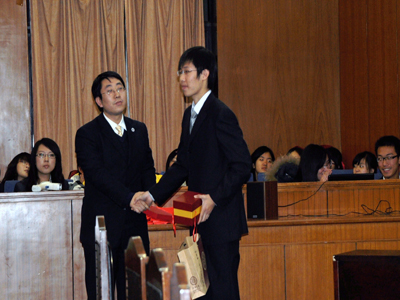 学生会主席王伟龙交换礼品