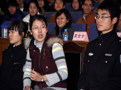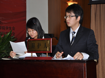 参赛选手作为辩护人在模拟法庭上陈词