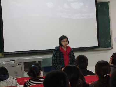 07级的卞苏与大家分享了她申请国外高校的经验,她告诉学弟学妹申请攻读国外著名高校博士学位,要获得国家公派留学资格要早作准备,尤其语言的准备,多关注相关导师的研究领域,根据导师研究重点精心准备研究计划。