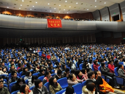晚上7点,在同学们热烈的掌声和欢呼中,濮存昕微笑着走向讲台。他首先介绍了自己的成长经历,并强调了家庭特别是父亲对自己的演艺生涯和人生道路的巨大影响,然后简述了自己在几十年里不断奋斗成为卓越演员的历程。兴致所致,他便情不自禁得吟咏了自己在多部剧作中的经典台词,酣畅流利,声请如昨,让我们深刻得体会到了作为专业演员所应该具备的卓越技能和忘我精神, 认识到成功的道路上,没有侥幸,只能奋进。