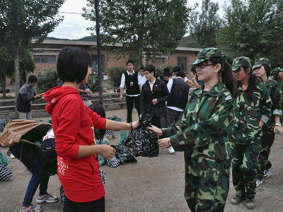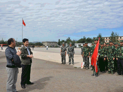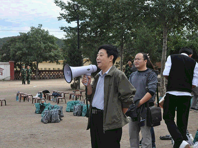 分党委书记刘大炜在分团委书记管晓立、2010级辅导员杨婷婷和学生会同学的陪同下,来到八达岭军训基地看望正在军训的大一新生。