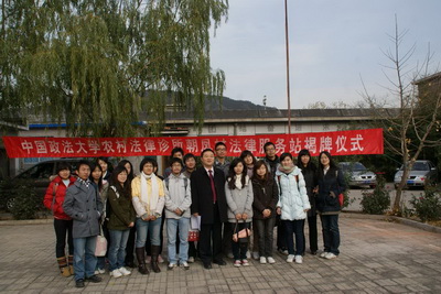实践教学教研室主任许身健副教授、农村法律诊所负责人袁钢博士、昌平区城北街道办事处副主任张文祥、昌平区城北司法所所长贾广元、朝凤社区党总支书记张金玉等出席了此次揭牌仪式。农村律诊所学生和朝凤社区部分群众参与了此次活动。