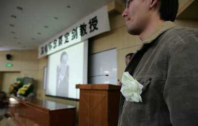 追思会开始前与会人员全体起立默哀一分钟,以示哀悼。我院焦洪昌教授主持了本次追思会,他表达了我们对于蔡定剑教授去世的悲痛,并感谢与会的蔡定剑教授的同事、朋友和学生们。焦洪昌教授转达了石亚军书记、黄进校长、马怀德副校长、我校前校长徐显明等对蔡定剑教授去世的沉痛哀悼。北京大学、人民大学、西北政法大学、武汉大学等院校也向我校发来唁电对蔡定剑教授逝世表示沉痛哀悼。