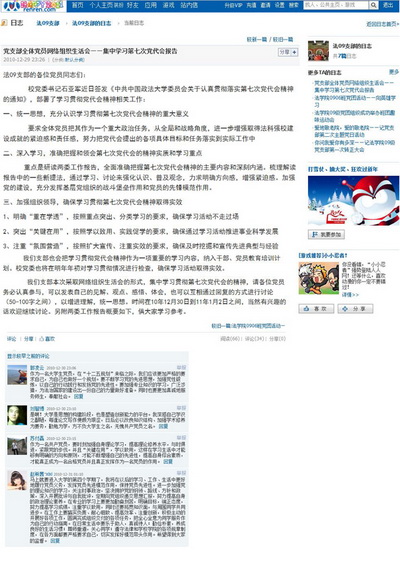 支部书记首先在日志正文主持发表了召开网络民主生活会的通知,同时传达了校党委关于部署进行贯彻落实党代会精神通知的具体要求,并附上了两委工作报告的概要供各位党员参考。党员在评论中都表达了自己的心声。