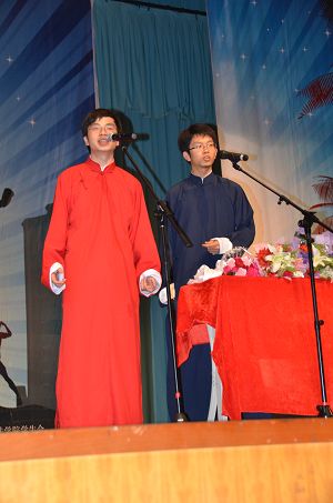 研究生院的同学们带来的歌曲串烧以及体改班同学带来的歌舞串烧《北京一夜》同样博得现场观众的阵阵掌声和欢呼声。其后,我院07级辅导员樊昌茂老师,双学士辅导员王家启老师,体改班辅导员陈育锦老师以及任淑梅老师联合带来了歌曲《祝福》,将现场温馨的氛围推向了高潮,给予现场观众深深的感动。