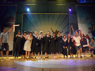 毕业典礼结束后,一段精彩的视频带领07级的同学们追忆了大学里的似水流年。接着,以“构想青春,扬梦未来”为主题的毕业晚会以热情活泼的歌舞《海芋恋》拉开帷幕。