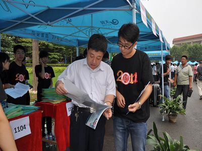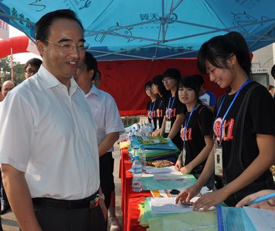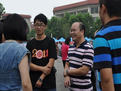 分团委副书记管晓立,以及11级辅导员樊昌茂分别来到展台前慰问并指导迎新工作。刘大炜书记和管晓立副书记在视察完迎新工作后,还与工作人员积极就迎新工作进行沟通和交流,并来到家长休息区与家长进行亲切交谈。