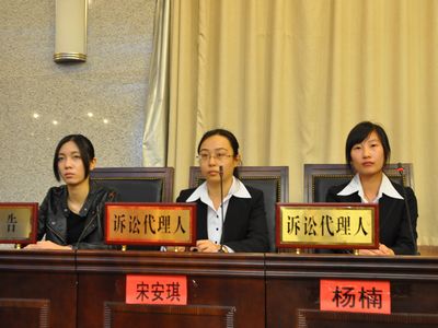 代表队傅薇、鲍嘉珣、李静娴担任合议庭,对外经济贸易大学代表队杨楠、宋安琪担任原告诉讼代理人,北京大学代表队朱新林、杨心恬担任被告诉讼代理人。
