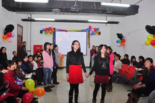 联谊会以2011级法制史博士女生的舞蹈开始,她们的舞蹈《一根紫竹》以优美的舞姿赢得了大家的热烈掌声。紧接着的相声节目《论捧逗》凭借两位表演者娴熟的技艺、诙谐的台词将气氛引向高涨。情歌《Beautiful love》、歌曲串烧、合唱、吉他弹奏等众多精彩节目相继登场,其中还穿插有“抢凳子”、击鼓传气球、三人抱成团等多种活泼、有趣的游戏。形式多样,各有特色,掀起了一波又一波的欢乐高潮。观众之间、观众和主持人之间的互动也是生动活泼、笑料频出,整个联谊会场气氛和谐融洽,舒适随意,欢乐的光芒大放异彩。随着大合唱《爱,因为在心中》的结束,长达两个多小时的活动在热烈、欢快的气氛中落幕。最后,黑料网 研究生会全体同学及各部门合影留念,记录这一难忘的快乐时刻。