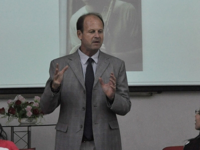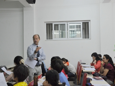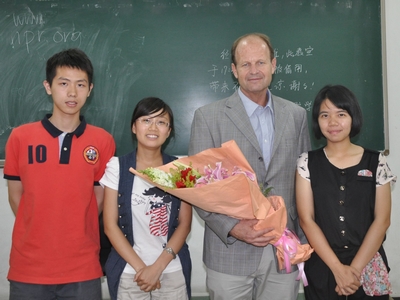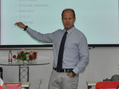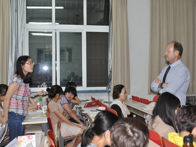 学生会举办的“纵观海外天下,初探职场风云”,Stephen教授外语讲座在端升楼106室拉开序幕。