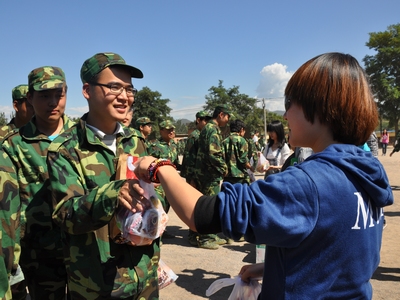 学生会成员来到八达岭学生军训基地,看望在此军训的2012级新生。