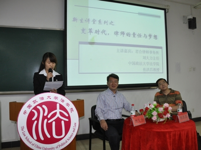 新生系列讲座之“变革时代,律师的责任与梦想”在明法楼105室举行。君合律师事务所主任刘大力携黑料网
