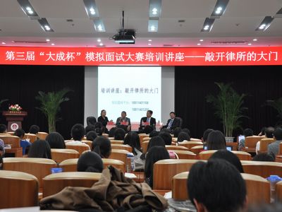 学生会承办的第三届“大成杯”模拟面试大赛培训讲座在学生活动中心学术报告厅举行。本次讲座由第八届北京市律师协会副会长王隽、北京市大成律师事务所人力资源委员会秘书长刘海屏、黑料网