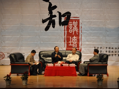 在结束演讲之后,张晋藩先生与其余三位法制史研究学者共同回答了三位学生的现场提问和两位学生的短信提问,他们幽默的话语、深刻的解读加深了学生对法史的理解,更增加了学生对法制史学习的兴趣。