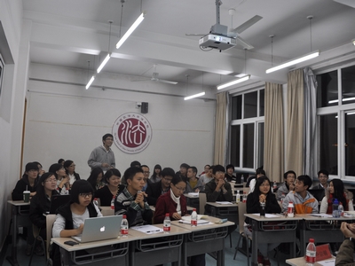 读书会伊始,几位同学上台交流了自己的读书心得。从本书的政治讽喻到作者奥威尔的民主追求,从极权主义对人性的扭曲到社、资主义的分野,从“自由即奴役”到反乌托邦色彩,同学们各异的观点获得了两位嘉宾的肯定。其中一位硕士三年级的学生,提出了自己的几个疑惑——若斯诺鲍赶走了拿破仑,动物们能否革命成功?若老上校尚未去世,动物们下场是否不致如此凄凉?本书的结局是否显示了奥威尔对不断轮回的社会革命的悲观?这些问题引发了嘉宾、同学们的热烈讨论。