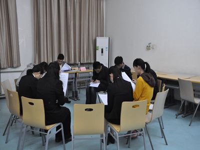 初赛采用小组讨论的形式,选手被分成不同参赛小组进入比赛场地,每组选手人数8-9人,要求5分钟审题,40分钟小组讨论,总结性陈述5分钟。参赛小组或激烈讨论,或合作有方,风格各异。评委老师根据各组及个人的特点进行了针对性点评。