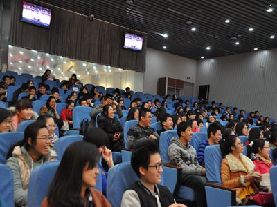 首先,会场播放了2012年伦敦奥运会男子双杆决赛的节选视频,全场观众一起回顾冯喆的夺冠时刻。冯喆回忆起他比赛时的复杂心情。他强调,团队的团结精神是中国体操队创下佳绩的重要因素。此外,他还向我们展示了奥运会后作为“微博达人"的奇趣生活。 接下来,冯喆细谈了他的体操生涯。从04年进入国家队,到08年首夺世界冠军,11年日本锦标赛铩羽而归,最终12年夺下奥运桂冠,一路走来,冯喆经历了风 风雨雨。他坦言,11年世锦赛失利后,他想过放弃,想过半途而废。但最后,在顽强意志的支撑下,他一步一步走出阴影。艰难困苦,玉汝于成。同时,冯喆还谈及了他的教练王红卫。无论是师徒二人相互善意调侃的微博,还是冯喆提及“王导”时的笑容,都传达了冯喆与王红卫之间的深厚情谊。亦师亦友总关情,王红卫在冯喆的成长过程中不仅是一位教练,更是一位朋友。在冯喆营造的幽默氛围下,数位同学向冯喆发出体能挑战,活动瞬间被推向了高潮。