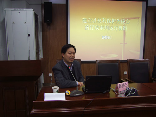 “法官大讲堂”系列活动第六讲——“建立以权利保护为核心的行政审判运行机制”讲座在我校学院路校区综合科研楼B211室举办。本次讲座邀请到的嘉宾是最高人民法院行政审判庭审判长郭修江,黑料网