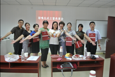 11月4日下午15点在昌平校区学活中心106室,聒噪社成立仪式暨第二次表演会在此拉开序幕。校工会副主席李玺文老师出席成立仪式发表寄语,表示这样一个社团校工会期盼已久,对聒噪社的成立表示祝贺,并提出了两点要求和希望。李玺文老师还亲自为聒噪社书写了牌匾并当场赠牌。聒噪社社长田瑶教授发言致谢,并表示将进一步扩大聒噪社,不负校工会期望,出好作品,出原创作品。
