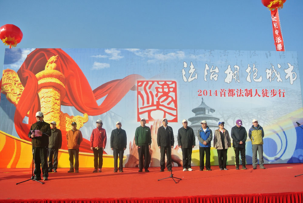 来自全国人大常委会法工委,国务院法制办,市人大常委会法制办,部分区县政府法制办和市公安局、市工商局、市安监局、市水务局、市城管局等市属委办局的法制干部,以及在京高校师生、律师、新闻单位政法记者代表等1800余人参加了本次徒步活动。