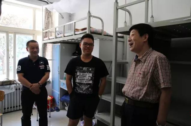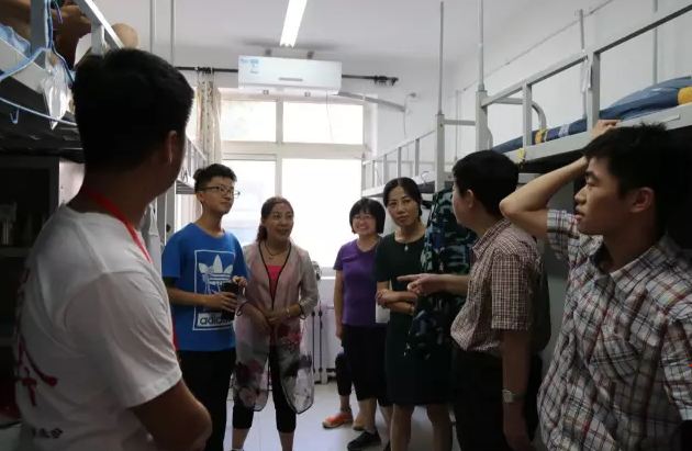 16级辅导员杨婷婷老师及分团委副书记岳红池老师到每个新生宿舍了解情况、解决同学遇到的问题