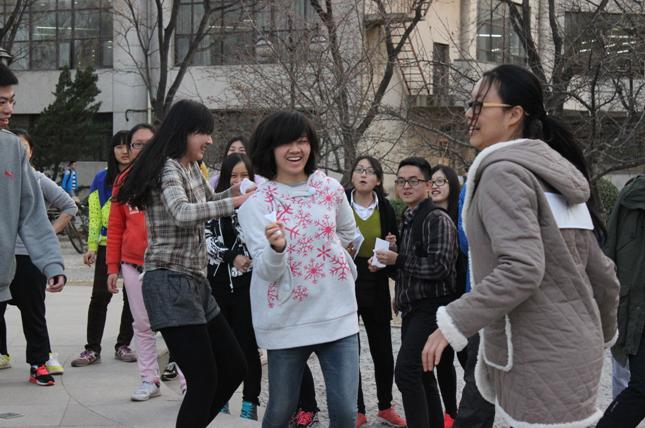 伴随着一声“开始”,两组队员迅速分散到广场的各个角落。比赛一开始呈现出势均力敌的状况,两队采取不同的战略战术。A组成员选择多人联合共同行动,发现落单的B组成员以后奋起攻击围剿并迅速撕下名牌。通过这种方法,A组淘汰了不少对手。B组则较为分散,攻击力较弱的几名成员明智地选择暂时躲藏起来保存体力,攻击力较强的几名队员则选择正面对决的方式,通过灵活的闪躲,迅猛的出手亦淘汰了A组的不少成员。比赛进入白热化阶段,两组成员聚集在广场的中心地区,A组人数占明显优势,经过几次一对一的PK试探,A组发动总体进攻,B组人员全军覆灭,A组取胜。有趣的是,在比赛全部结束以后,B组一名隐藏了很久的成员终于现身,遭到众人围攻。撕名牌结束后,参赛队员到后勤处领取慰问品。
