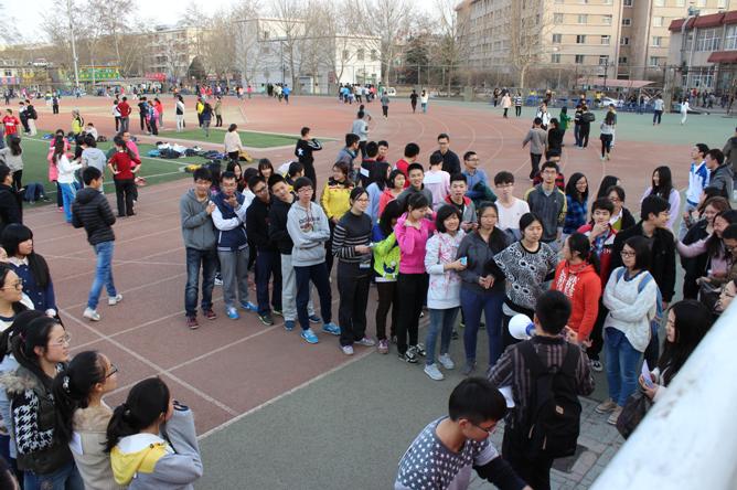 下午五点,参赛队员在运动场集合,分为A,B两组并佩戴好各自的名牌。A组由短跑队,长跑队组成,B组则由跳跃队,中长跑队,投掷队,跨栏队与全能队组成。准备工作完成后,两组人员前往正式撕名牌场地—婚姻法广场。