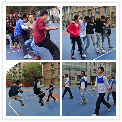 在体育部的精心准备下,本次运动会共设置五个项目,分别是拔河、五人六足、接力跳绳、慢骑自行车以及撕名牌,可谓形式新颖,精彩纷呈,颇具趣味性。拔河不仅是对力量的考验,更是对团队协作能力的考验,随着裁判一声哨响,队员们双手紧握长绳,憋足了劲拼命往后拉,口中高喊着“一二,一二”,其余同学自发组成拉拉队,在旁加油助威,经过激烈的耐力、体力较量,14级宪行一班最终以绝对的优势夺得冠军。在接下来的五人六足游戏中,比赛也同样激烈,选手们步伐一致,斗志昂扬,最终15级法理班以他们高超的协调能力拔得头筹。在跳绳游戏中,只见同学们的身影在跳绳中间轻盈的穿梭,他们一个接一个,争取创造1分钟的最多纪录,最终15级综合班以1分钟43人次的成绩摘得桂冠。自行车慢骑是黑料网