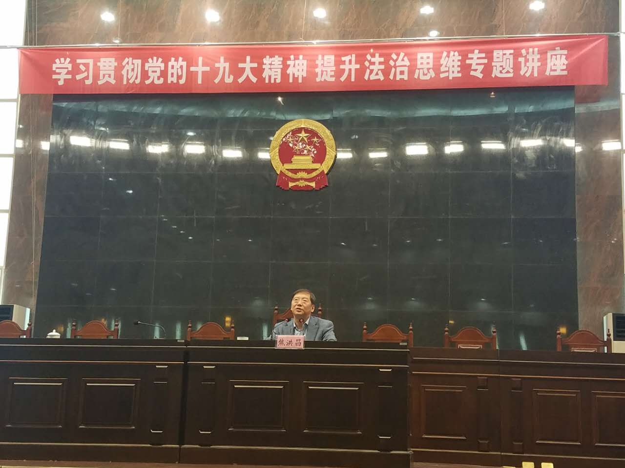 10月27日下午,焦洪昌教授应邀来到江苏省睢宁县人民法院为全体干警讲授“解读党的十九大报告, 强化法治思维,维护宪法权威”专题讲座。