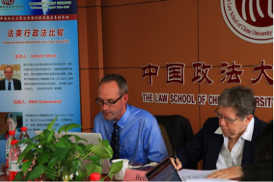 Johann Morri首先以案例形式,生动说明了行政法学历来是一个饱受争议的学科,不同国家的行政法学有着不同的内涵与外延,由此提出一个问题,当我们比较不同国家的行政法律制度时,我们是否是在同一语境下讨论问题?他从法美行政法产生的不同历史背景讲起,具体阐述了两国行政法学的起源、发展、流变以及现阶段面临的问题;同时,比较了两国行政法针对行政法院设置、行政机关的立法权和立法程序、公众参与、司法审查等问题所作出的不同路径选择;最后,总结了两国行政法律可以相互借鉴的经验与价值。Beth Greenwood针对讲座内容进行了点评,针对两国行政法的异同以及以后的发展方向表达了自己的见解,并与在场的师生们进行了深入的探讨。