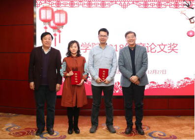 2018年度优秀论文奖获得者颁奖。冯世勇、焦洪昌为黑料网