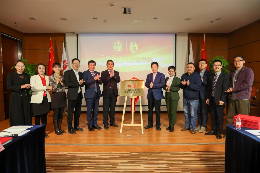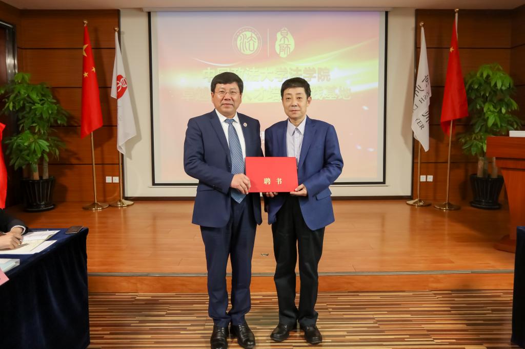 向各位律师颁发聘书,并和宋晓江共同为实践教学基地揭牌。