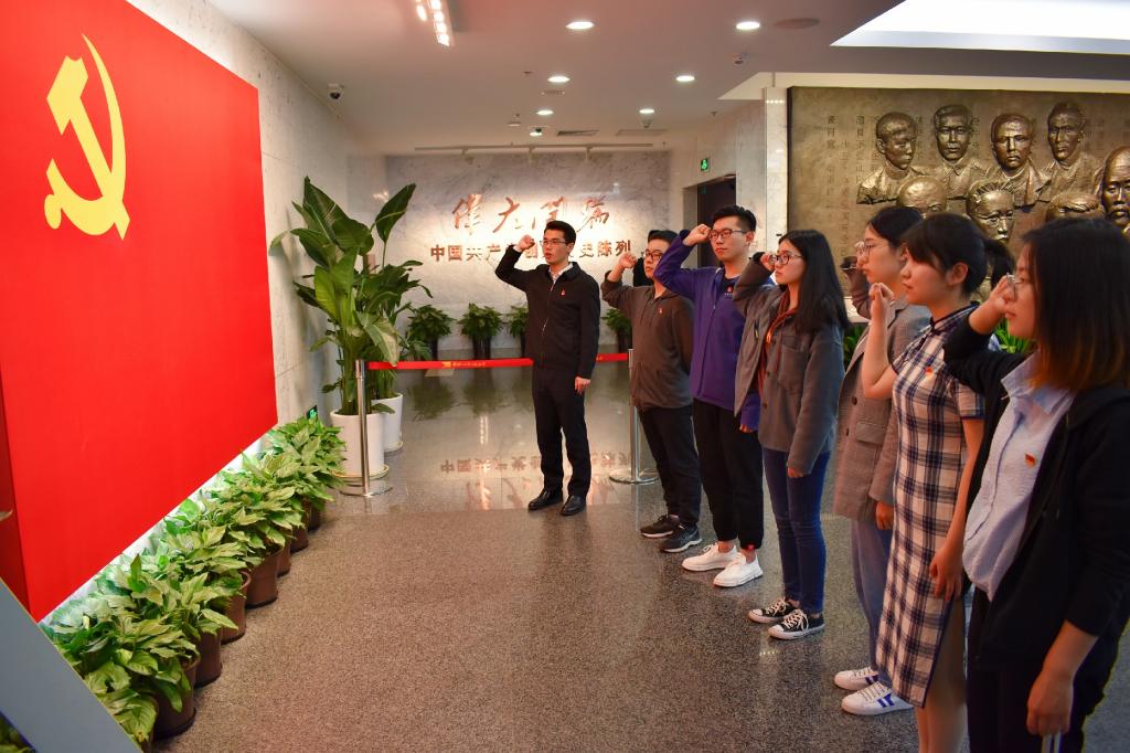 瞻仰一大会址,追寻真理味道。98年前,上海兴业路低矮的石库门小楼里,嘉兴南湖朴实的画舫上,13名来自五湖四海的代表,为着一个共同的革命目标走到了一起,宣告了中国共产党的成立。党团共建学习小组前往上海中共一大会址及嘉兴南湖瞻仰学习,在讲解员的带领下,小组成员完成了对中共一大的历史回顾。在中共一大会址纪念馆宣誓厅党旗前,同学们举起右拳,郑重宣誓,洪亮的宣誓声响彻整个大厅。随后,党团共建学习小组参观乐五卅运动纪念碑及宋庆龄故居。前辈们以崇高的社会责任感和历史使命感,主动承担起了拯救民族危亡的重任,致力于推动中华民族走向复兴,令同学们的敬佩不已。之后,小组成员还在义乌市分水塘村瞻仰了陈望道故居,了解其为共产主义事业而奋斗的一生,追寻陈望道翻译《共产党宣言》时品味到的真理的味道。