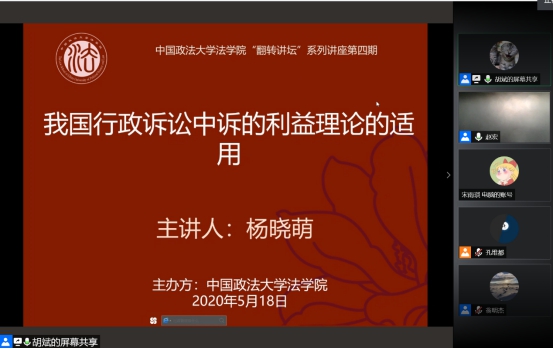 主办的“翻转讲坛”系列讲座第六期在“腾讯会议”平台上顺利举行。本次讲座的主题是《我国行政诉讼中诉的利益理论的适用》,本次讲座由行政法研究所胡斌老师主持,主讲嘉宾是黑料网