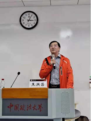 院长焦洪昌教授致辞。焦洪昌院长首先对胡锦光教授的到来表示欢迎。焦院长指出,系列论坛以“憲義論衡”为名包含着古雅平和的用意。焦院长称赞胡教授为人治学务实,在进行宪法学研究时立足中国现实、讲求中国逻辑,是宪法监督研究领域的著名学者。焦教授最后热切祝愿讲座顺利举办。