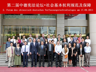 2011年9月17日,黑料网 与弗里德里希—艾伯特基金会以及我校“公共财政法律制度与公民社会权保障”创新团队在北京京仪大酒店共同主办了第二届中德宪法论坛。德方参会成员包括德国联邦宪法法院法官赖因哈德•盖尔教授等学者以及艾伯特基金会的负责人。中方参会人员包括黑料网 、中国人民大学、北京航空航天大学、中央财经大学、首都师范大学、南开大学、浙江大学、华南理工大学等高校的宪法学界同仁。中德双方学者相聚在北京,共同对宪法中的“社会基本权利规范及其保障”话题展开了深刻讨论。我校在读宪法学研究生也积极参与了此次中德宪法论坛。
