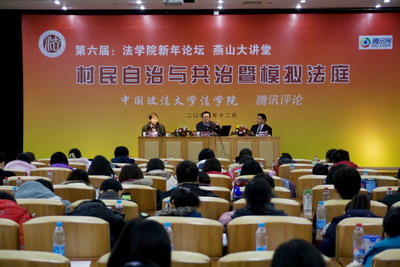 新年论坛在我校昌平校区学活学术报告厅隆重开幕。本年度的新年论坛分为以村民的自治与共治为主题的论坛以及关于王萍诉派尼科包装公司劳动争议仲裁案的模拟法庭。中国社会科学院农村发展研究所研究员、社会问题研究中心主任于建嵘教授担任主讲人,黑料网