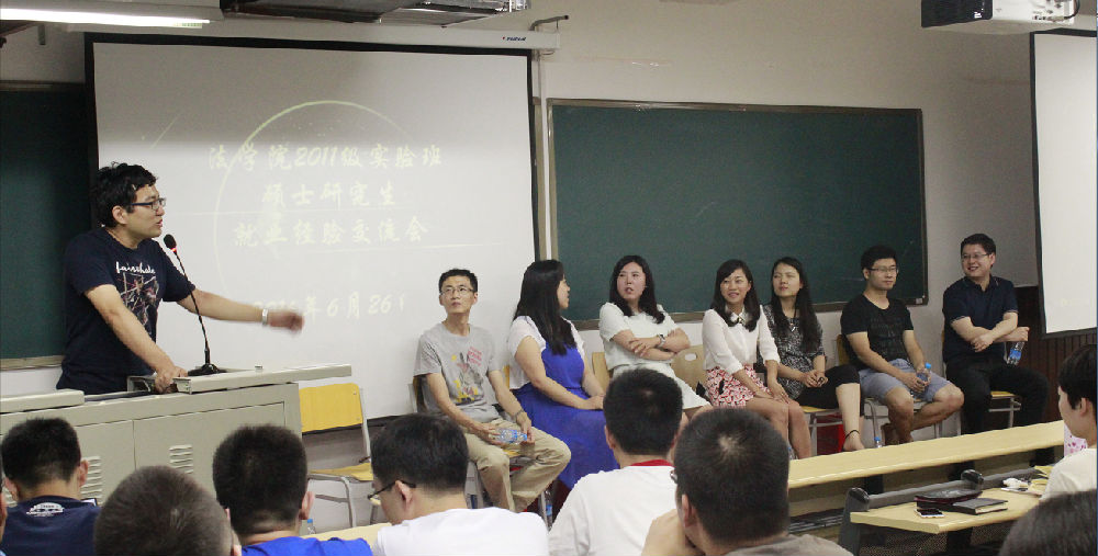 2011级实验班在新地103教室成功举办了就业经验交流会。此次交流会邀请了八位毕业九年的优秀师兄师姐与大家进行就业经验交流,整个教室座无虚席。座谈会由樊昌茂老师和谢占林师兄主持。