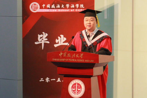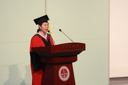 毕业生们提出了发展目标和要求。她指出,真正的法律人是崇高的,务实的,是知识丰富的,能力智慧超群的,公正善良的,是一类非常纯粹的人。她还告诫同学们,在我国制度改革的今天,法治之路总是充满荆棘,但真正的法律人应坚持法治梦想,努力推动法律秩序建构,实现社会正义。最后,她表达了对每一位毕业生的祝福和期望,希望每一个毕业生都以真正的法律人的标准要求自己,为中国的法治建设作出自己的贡献。