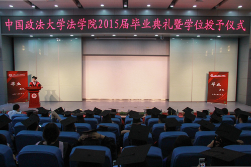 2011级实验班辅导员樊昌茂老师以及双学士辅导员刘澍老师和王琦老师。分党委书记刘大炜主持典礼。全体2015届“双学士”以及法学实验班毕业生身着学位服,与师友、家人一同见证了人生中这一重要的时刻。