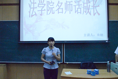 的新生表示祝贺和欢迎,随后,他结合自己的心得体会,带领同学们了解了自己即将接触的法学专业以及大学生活。袁钢老师先从纵向分析了中国法治的历史进程,再从横向角度比较了美国社会与中国社会法律制度与法治发展情况的异同,同时对比了中国不同地区法律资源分配情况,用生动的案例带同学们初识法学是一门怎样的学科。接着,袁钢老师叮嘱同学们要珍惜校园生活的快乐与宁静,希望同学们能够在六年的学习生活中浸润法大,践行法律。在互动环节,同学们踊跃地向老师提问,袁钢老师则用幽默风趣的语言一一作了解答,现场欢笑阵阵,掌声不断。在最后,岳红池老师对袁钢老师精彩的演讲表示了感谢。