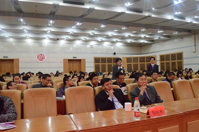 本次讲座分为嘉宾论坛及观众互动环节两部分。在嘉宾论坛环节,曹阳首先给同学们介绍了有关面试的一些技巧问题,包括投放简历以及在面试现场应该注意的细节事项,使同学们对面试相关环节有了更深的了解;乔路则以轻松幽默的讲授方式从法律思维的问题谈起,帮助同学们回答了如何从法学象牙塔走向律师实务的问题,其中他着重强调,走向律师实务除了要有良好的法律思维和基础外,更要学会沟通、学会应对磨难、学会在乏味的工作中发现法学之美。