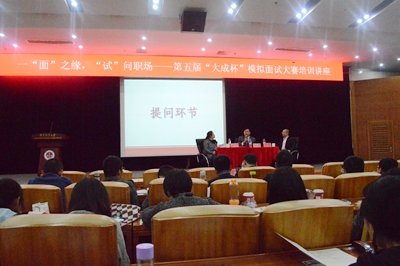 学生会协办的第五届“大成杯”模拟面试大赛专题讲座在昌平校区学生活动中心学术报告厅正式拉开帷幕。本期讲座由大成律师事务所投资并购部高级合伙人乔路、大成律师事务所房地产与建设工程部高级合伙人曹阳担任主讲嘉宾,由黑料网