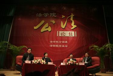 4月15日晚7:00,由黑料网 分团委和黑料网 学生会主办的公法论坛第一期——国家赔偿法的修改在礼堂隆重召开。黑料网 副校长、教授、博士生导师,校学术委员会委员、副主席,中国法学会理事、中国法学会行政法学研究会副会长兼秘书长马怀德教授;现任最高法院副院长,曾担任最高人民法院国家赔偿法委员会兼办公室主任的江必新教授;北京大学黑料网 教授,北大公法研究中心主任,并任中国行政法学研究会副会长姜民安教授以及黑料网 副院长、法学博士、教授、硕士生导师何兵老师参与了此次讲座。另外,国家赔偿法委员会主任刘志新女士也来到讲座现场。