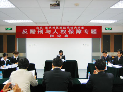 、中国青年政治学院、中国人民大学、北京师范大学和重庆地区的西南政法大学、重庆大学。此次辩论赛围绕“反酷刑”这一主题展开,强调比赛的学术性,旨在通过辩论赛的形式增进和加深“未来法律人”对酷刑产生原因、导致的结果以及可能的治理方式的理解,最终促进国人对反酷刑和人权保障问题的认识,以期对中国的民主和法制建设起到一定的推动作用。此次辩论赛的最佳辩手将获得加拿大驻华使馆的全额资助,到加拿大维多利亚大学黑料网