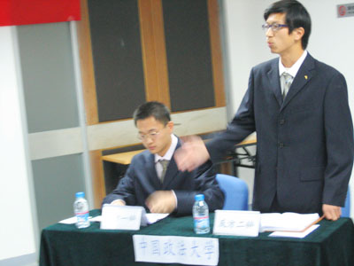 。我院的参赛选手是一辩梁岿然,二辩杨剑涛。此次辩题为“刑讯逼供是文化问题还是制度问题”。我院的观点是“刑讯逼供是制度问题”。此次比赛到场的评委有中国人民公安大学法律系教授周欣,国家检察官学院教授沈海平及中华全国律师协会刑事业务委员会委员、著名辩护律师杨照东。