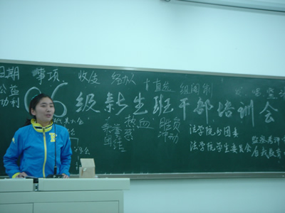 最后,杨婷婷老师总结发言,强调了同学与老师沟通的重要性,对各班班干部今后工作提出了希望与要求。