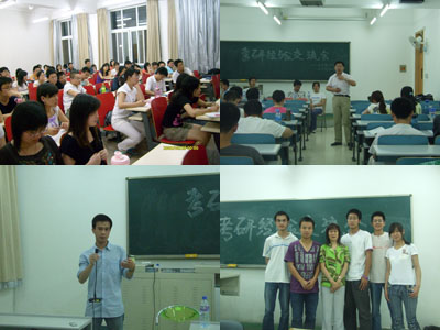 到场的我校研究生院的同学对考研和现在的大三的情况都比较熟悉,他们从自己的亲身经历讲起,将其中的困难,坎坷以及信心,意志都展示给同学们,“其实,不算什么,考研考得就是大家的一种坚持,一种抗争,谁坚持到底谁就可以笑到最后,当然以只是储备为前提,”07年我校研究生考试国际法专业第一名林华同学说道。针对同学们比较关心的复习顺序和时间,复习资料的选择,培训班的考虑以及作息的规律,感情问题,研究生代表都是针对自己的体会,从同学那里了解的情况,以及老师们的看法给出了最诚恳的建议,使得同学们对这些重要问题有了一个很清楚的认识。