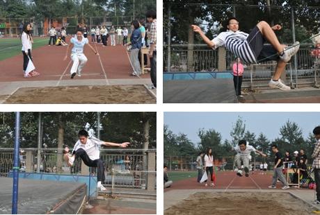 其他的田赛也热火朝天地进行着,不时发出的尖叫声告诉我们那里也是硕果累累,成绩骄人。同学们超越着似乎无法逾越的高度,跨过似乎难以抵达的远度。他们努力着,让人感动,让人欣慰。